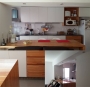 En un apartamento de Pocitos, se nos consulta por una fisura en el muro que divide la cocina del living comedor. La conversación sobre el tratamiento de esta patología (no estructural) con la clienta, derivó en su deseo por una actualización de la cocina. Se propuso una renovación de revestimientos, equipamiento, cambio de aberturas y una integración de la cocina al living comedor, obteniendo un mejor aprovechamiento de los espacios, mayor amplitud, una mejor iluminación natural de los ambientes y un espacio de comedor diario más atractivo.