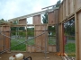 Las paredes exteriores son paneles sandwich conformados por perfiles estructurales en madera, verticales (montantes) y horizontales, dobles en las esquinas y aberturas, placa de yeso, espumaplast, placas fenólicas, nylon (barrera de vapor), malla metálica estructural grapada a chapones, mortero (ferrocemento), membrana líquida y zócalo exterior en símil piedra, balai y pintura. Los tabiques interiores son con estructura en madera, placas en E.P.S. (poliestireno expandido) y yeso.