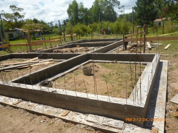 La estructura se realizó con madera aserrada y tratada de procedencia nacional, utilizándose en la construcción de las paredes exteriores y tabiques, ambos portantes, trabados entre sí de forma ortogonal y complementada con pilares de refuerzo de hormigón armado en el encuentro de muros, vinculados éstos a la cimentación (zapata corrida de hormigón armado). El piso es de hormigón liviano con espumaplast picado (E.P.S.) y malla plástica, a modo de platea y contrapiso sobre nylon.